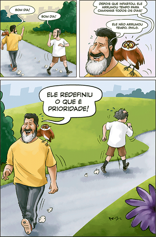 A obra reúne 100 tirinhas e charges protagonizadas pelo próprio Professor Cortella e pela coruja Philó, personagem já conhecida pelos seguidores do filósofo no Instagram. Juntos, eles discutem temas como família, ética, trabalho, propósito, afetos, educação e vida coletiva, tudo de forma leve, divertida e acessível.